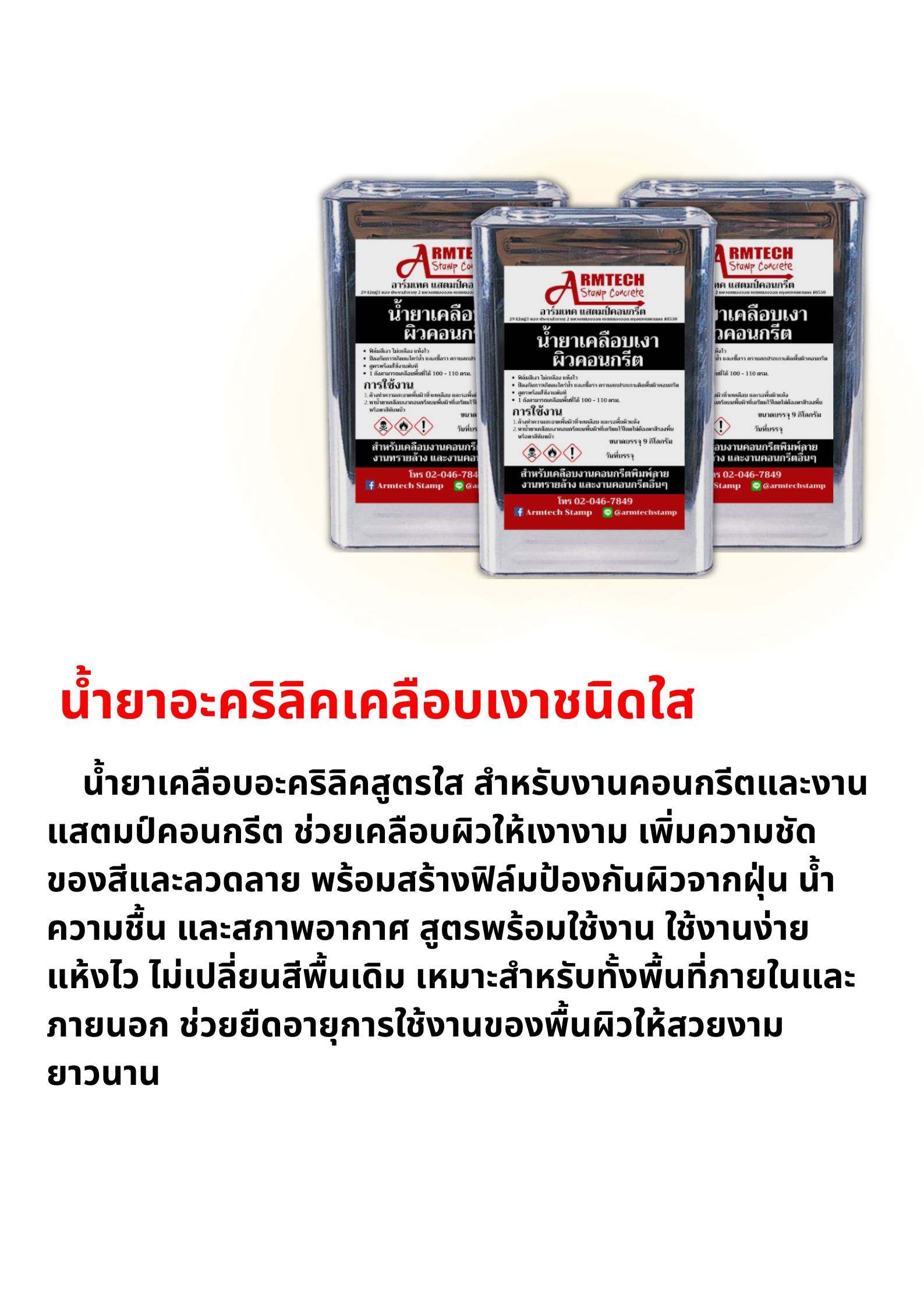 Armtech Stamp น้ำยาเคลือบเงาผิวคอนกรีต ขนาดบรรจุ : 15 กิโลกรัม พื้นที่ใช้งาน : 80-100 ตารางเมตร