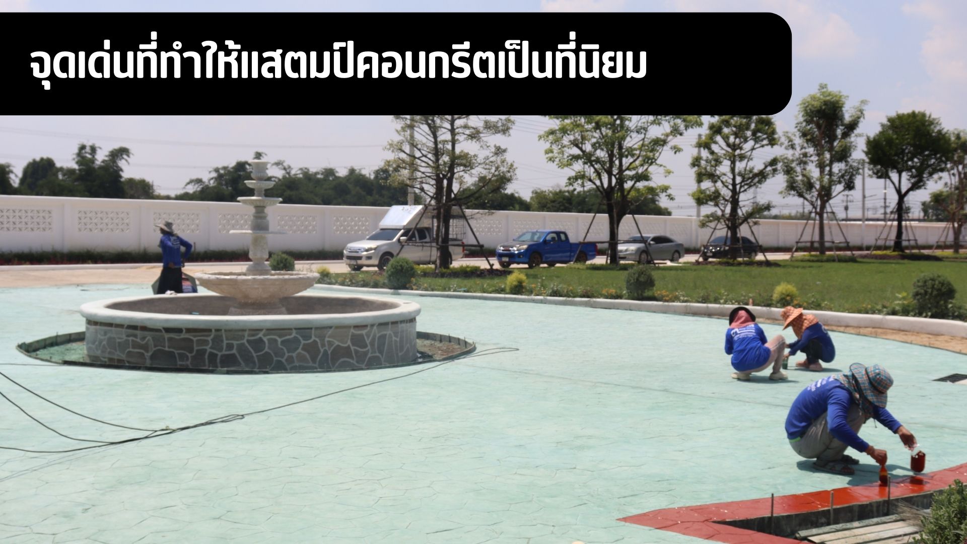 งานคอนกรีตสวยงาม ด้วยเทคนิคแสตมป์มีข้อดีมากมาย เริ่มจากความแข็งแรงทนทาน ที่สามารถรับน้ำหนักได้ดีและทนต่อการใช้งานหนัก คุณสมบัติกันลื่นที่ปลอดภัยแม้เมื่อเปียกน้ำ และกันน้ำที่เหมาะสมกับสภาพอากาศเมืองไทย