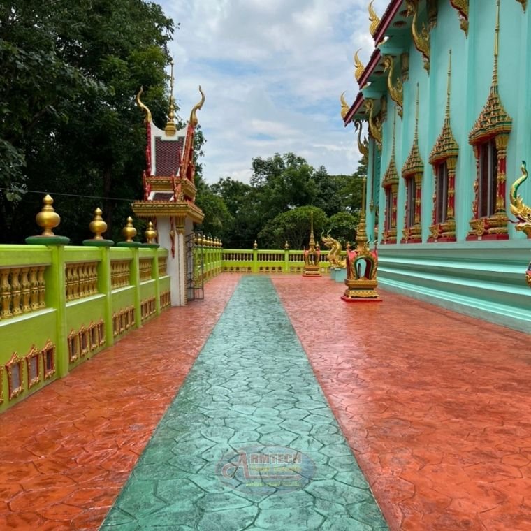 Armtech Stamp Concrete: สามารถพิมพ์ลวดลายได้หลากหลาย เช่น Random Stone, Ashlar, European Fan ฯลฯ และปรับโทนสีได้ตามต้องการ ตั้งแต่โทนธรรมชาติไปจนถึงสีเข้มแบบลักชัวรี